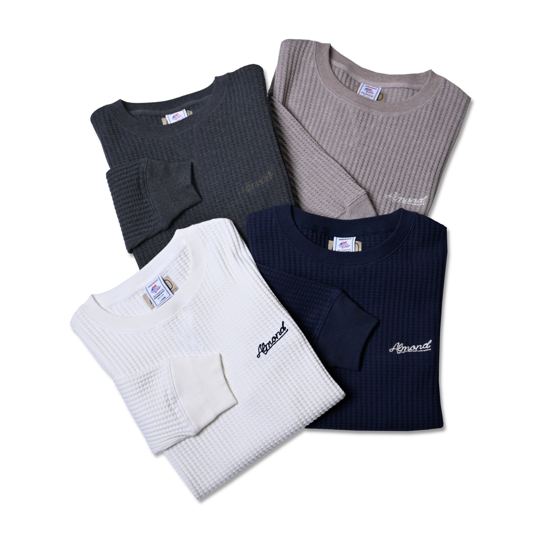 アメリカの老舗サーマルウェアブランドのJEMORGANとのコラボBIG WAFFLE L/S Tee。コットン80% ポリエステル20% 中国製