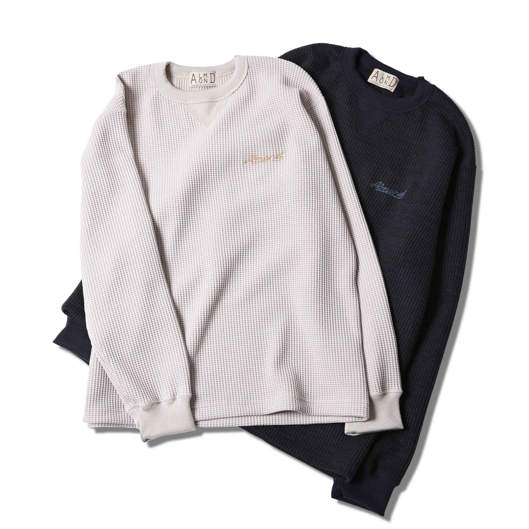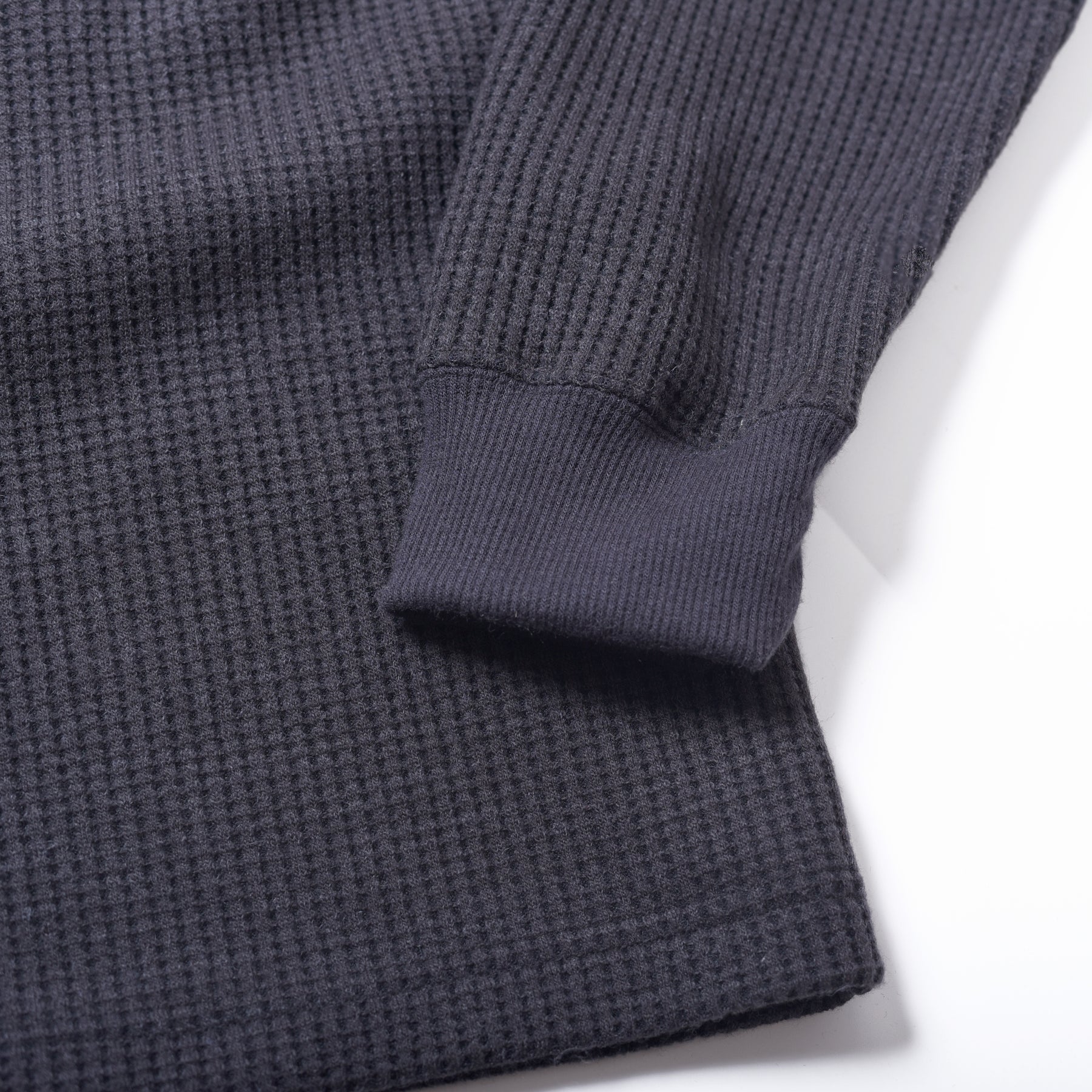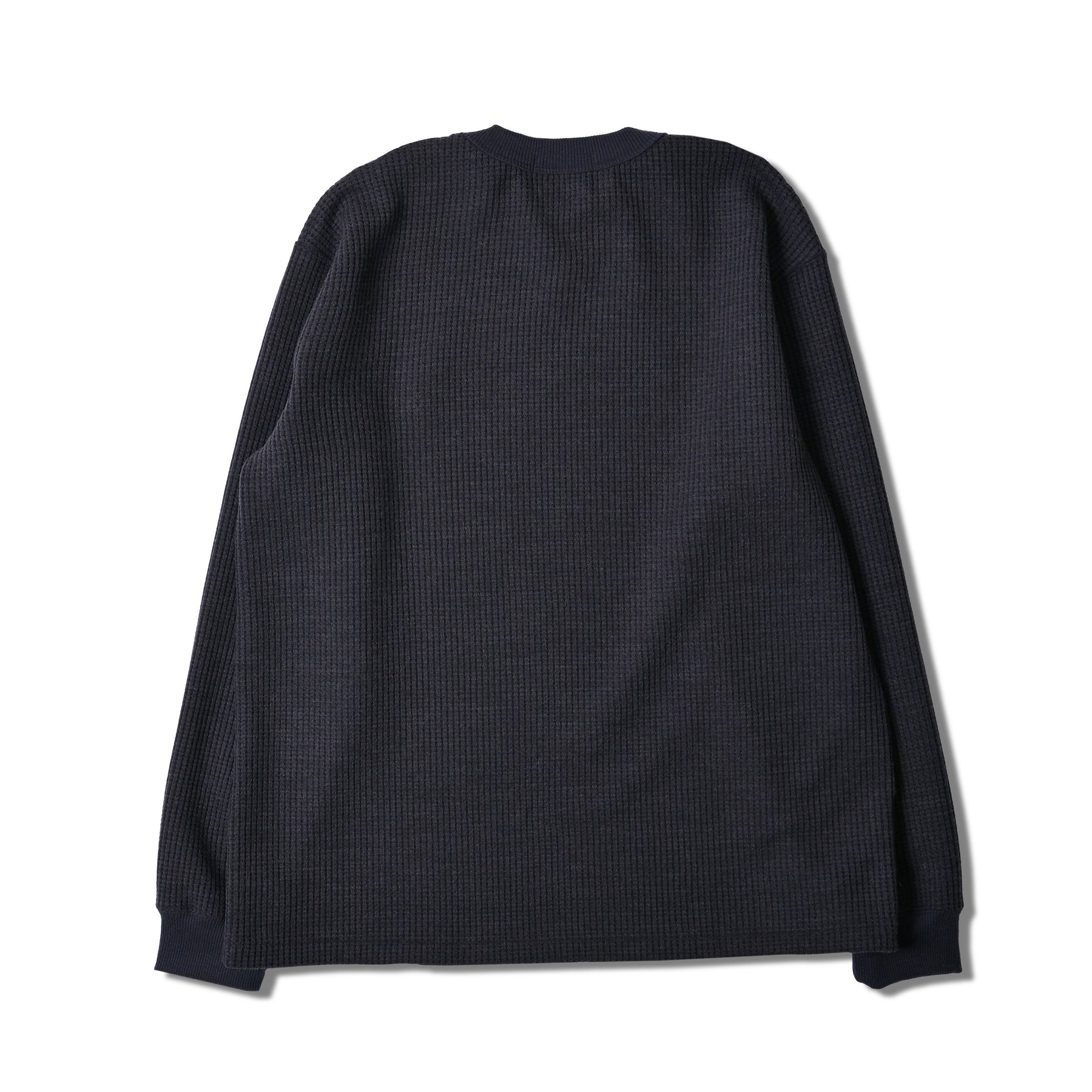 Made in Japanのワッフル素材使用のクルーネック。ウール混でとにかく軽くて暖かいです! アクリル61%、ポリエステル33%、ウール6% 日本製